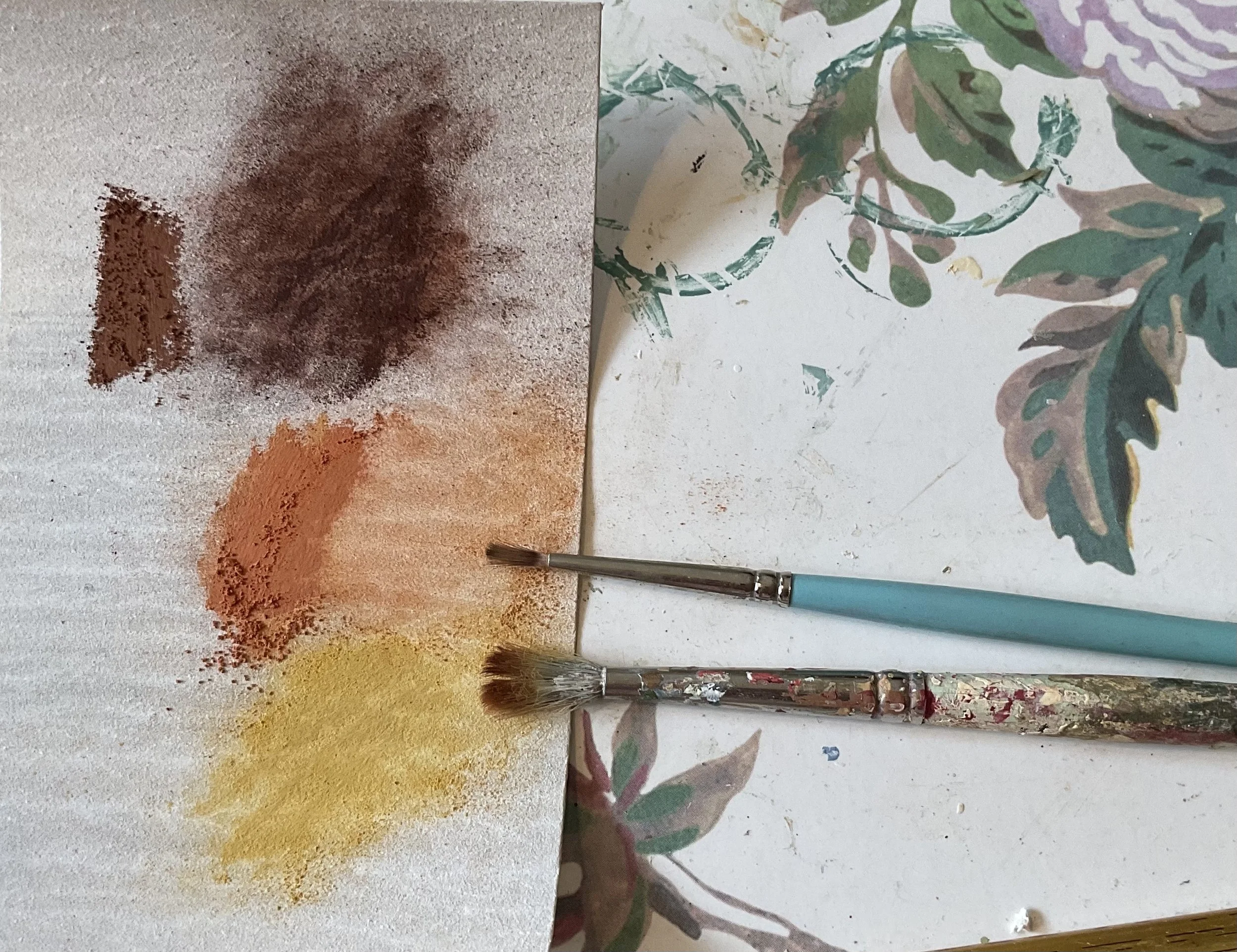 soft pastels in yellow ochre, burnt sienna and burnt umber (or other similar colours) or paints in similar colours