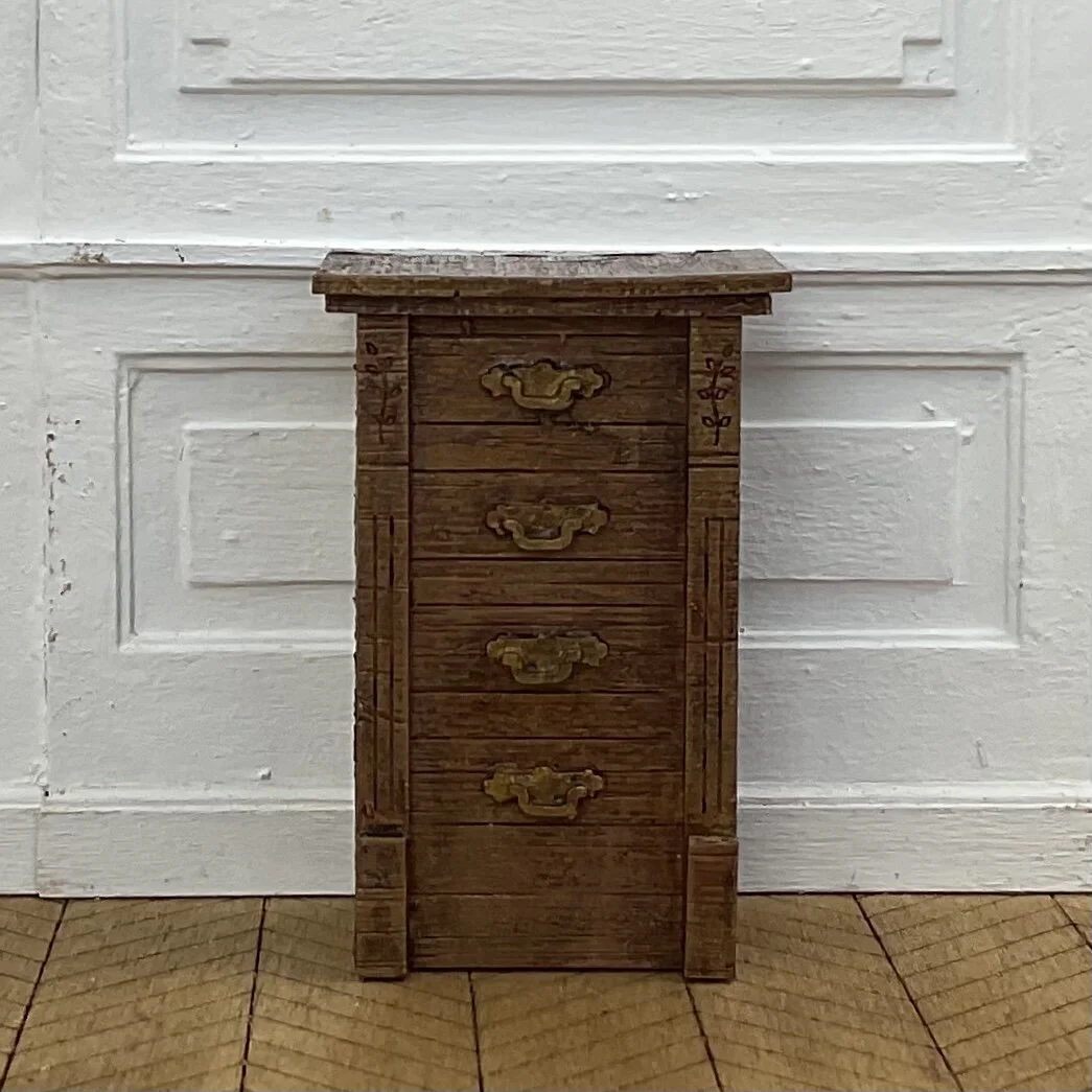 The kit is laser cut from a quality ply and card. The finished bedside measures approximately 25mm wide x 18mm deep x 37mm high. Detailed instructions with photos are provided, and I can be contacted if you have any questions before, during or after construction.